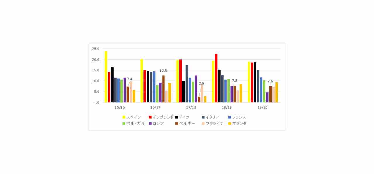 ポルトガルのポルトやベンフィカ、ロシアのゼニト、ウクライナのシャフタール・ドネツク、オランダのアヤックスのような、その国において飛び抜けたクラブがないというのが特徴だと言えます。